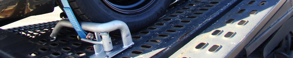Para fixar corretamente os veículos num porta-veículos, devem ser utilizados cintos de amarração de três pontos com uma manga de aperto e em combinação com calços.
